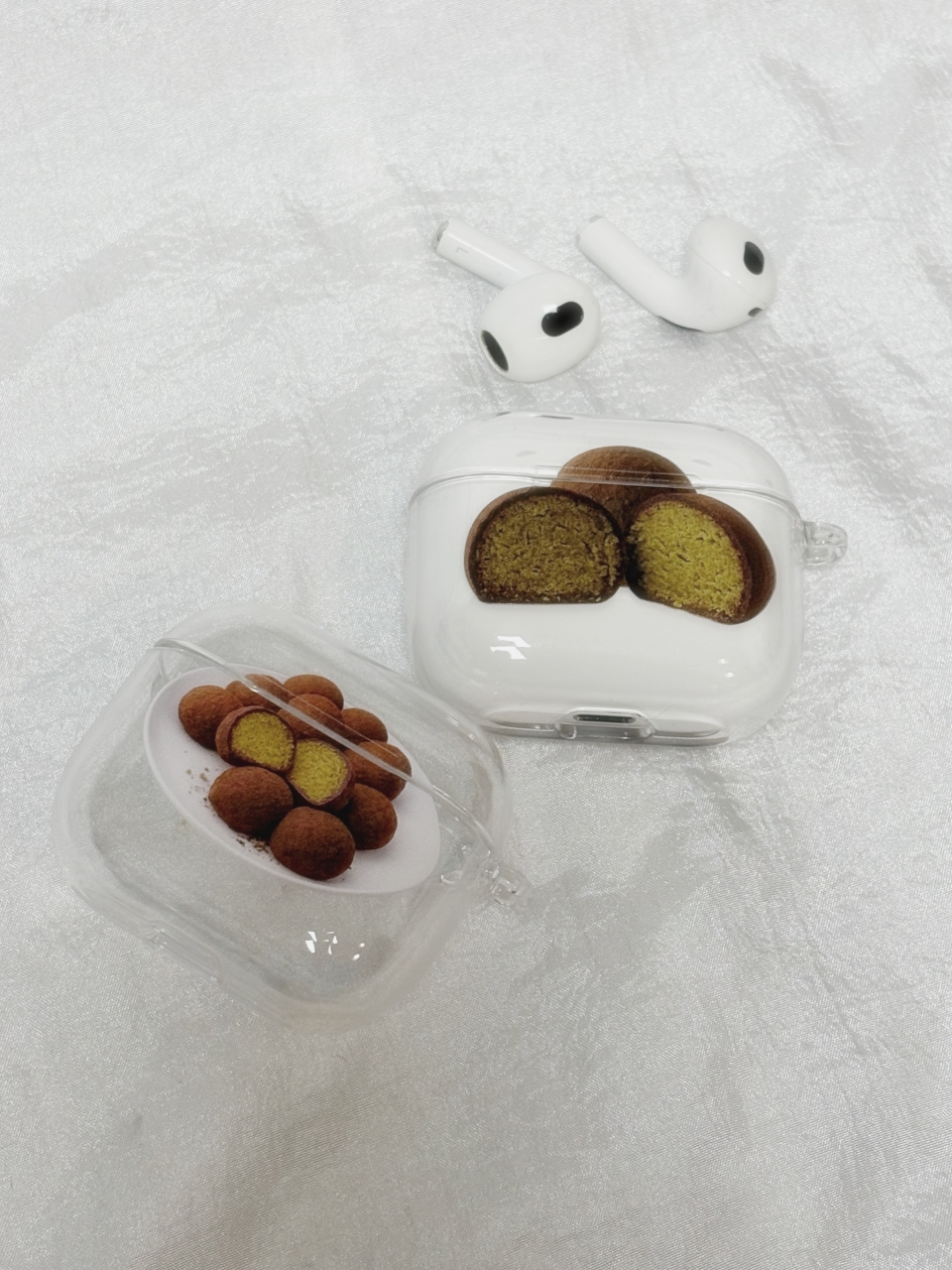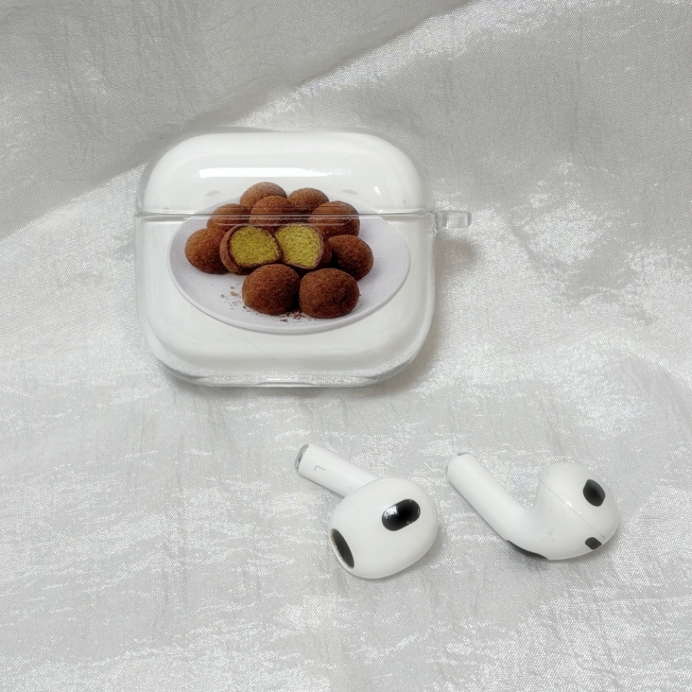 Chewy Cookie airpods case 귀엽고 위트 있는 두쫀쿠 에어팟 케이스입니다. 작은 포인트 아이템으로, 선물용으로도 추천드려요. 노래를 들을 때마다 기분까지 좋아지는 데일리 아이템으로 활용하기 좋습니다. 변색 없는 프리미엄 PC 소재로 제작되어, 시간이 지나도 황변 현상 없이 맑고 투명한 상태를 유지합니다. 국내산 최고급 자재를 사용한 내구성 높은 사출 케이스로 단단한 보호력과 세련된 디자인을 모두 갖춘 제품입니다. AirPods을 스크래치와 충격으로부터 안전하게 보호합니다. 오랜 기간 사용 시 생활기스로 인해 프린팅이 일부 벗겨질 수 있는 점 양해 부탁드립니다.