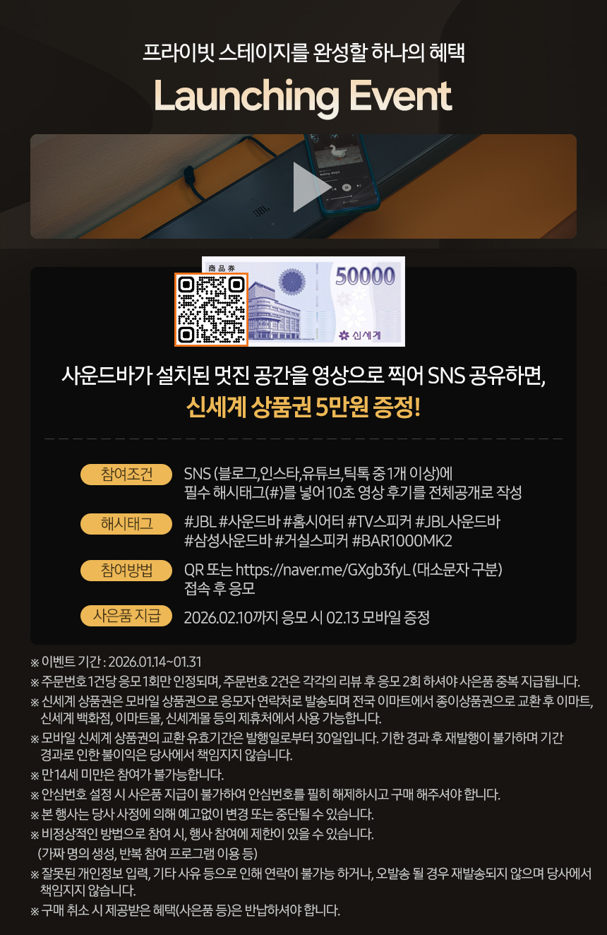 제이비엘 BAR 1000 MK2 7.1.4 채널 사운드바