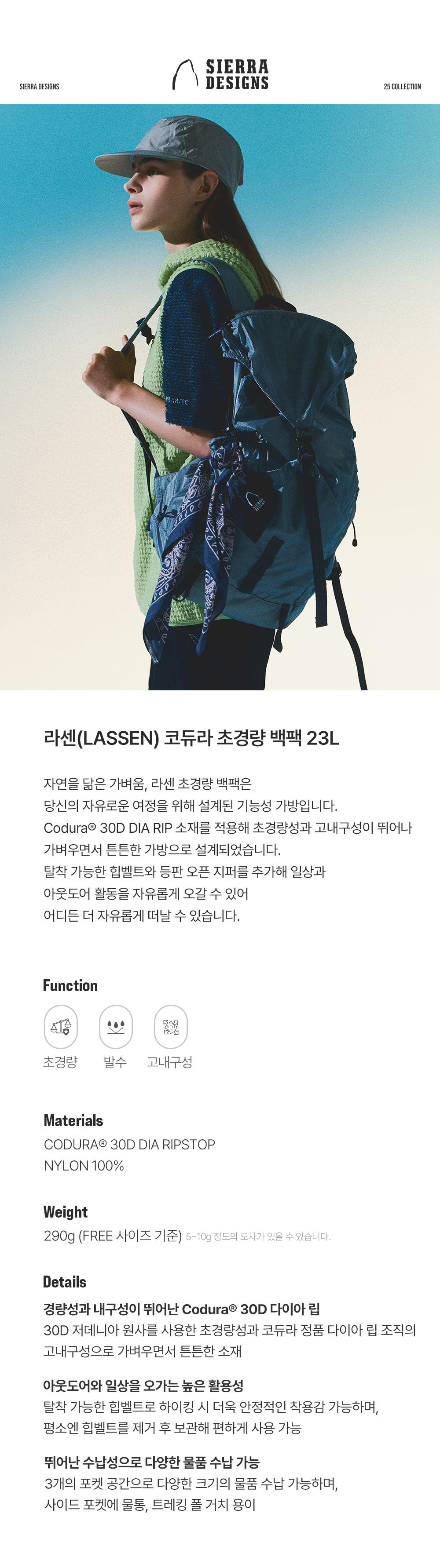시에라디자인 라센 코듀라 초경량 백팩 23L 그레이