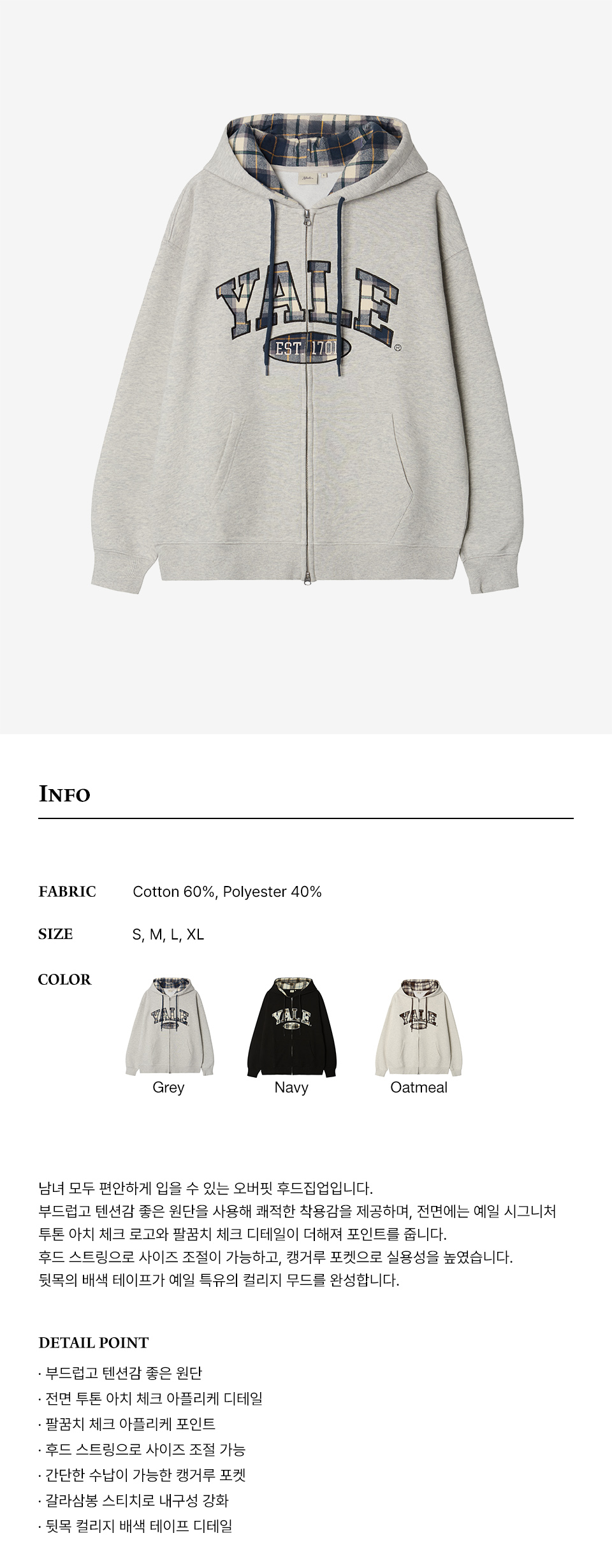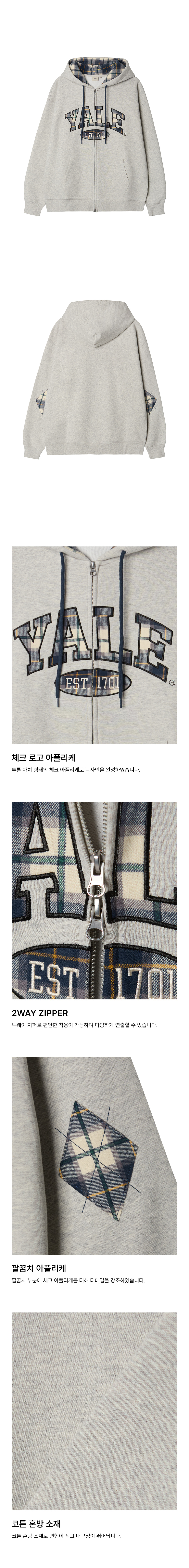Yale Check Two-Tone Arch Hoodie Zip-Up Grey