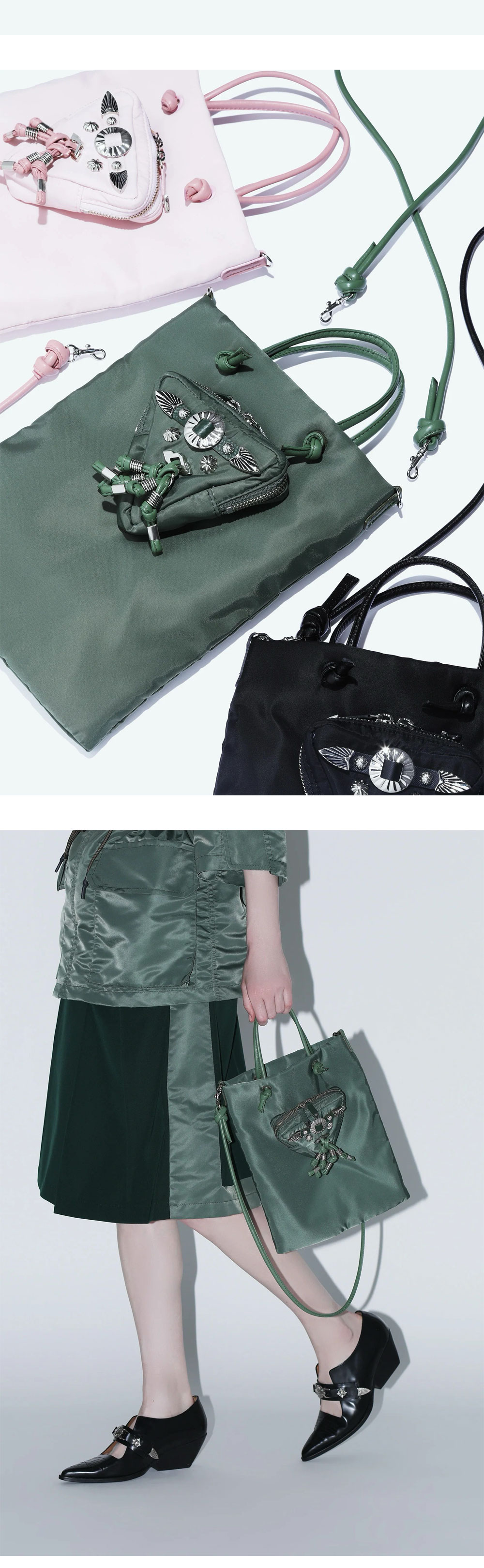 토가 투 트라이앵글 파우치 백 블랙입니다. - 탈부착 가능한 스트랩으로 숄더백과 파우치 2-way 활용 가능 - 가벼운 나일론 소재와 견고한 소가죽 포인트의 조화 - 토가만의 감각적인 메탈 디테일이 더해진 세련된 아이템 - MADE IN JAPAN