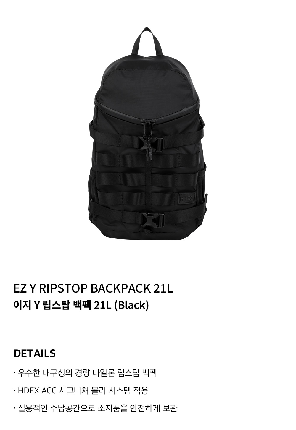 에이치덱스 이지 Y 립스탑 백팩 21L 블랙