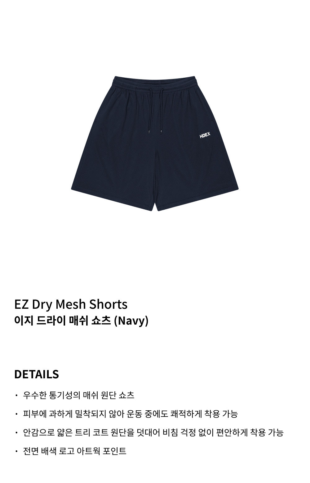에이치덱스 이지 드라이 매쉬 쇼츠 네이비
