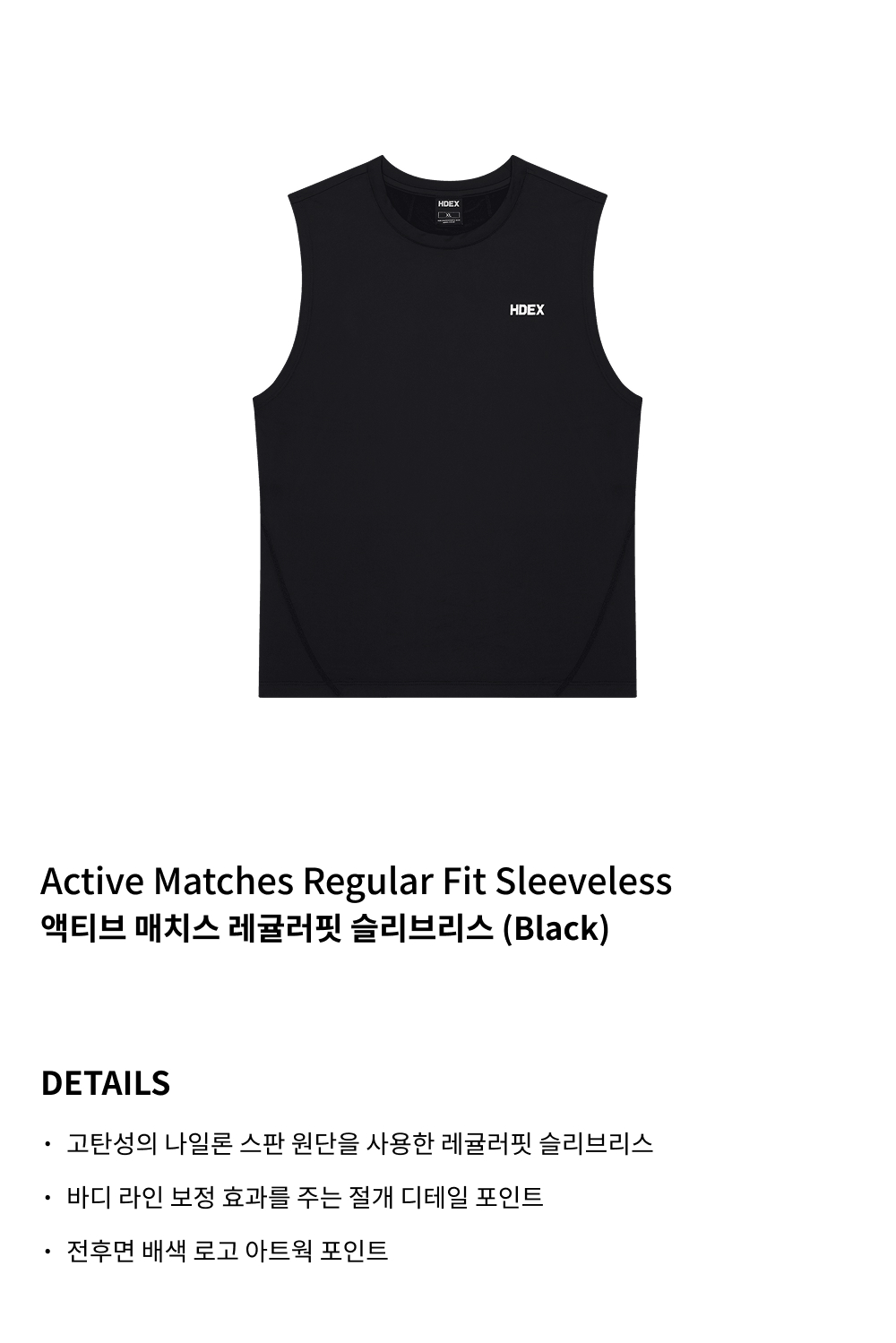 에이치덱스 액티브 매치스 레귤러핏 슬리브리스 블랙