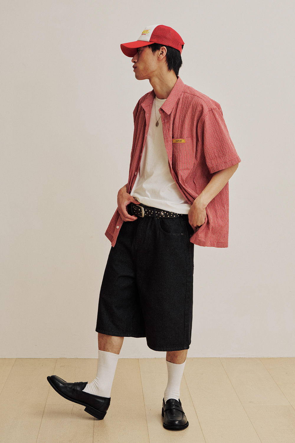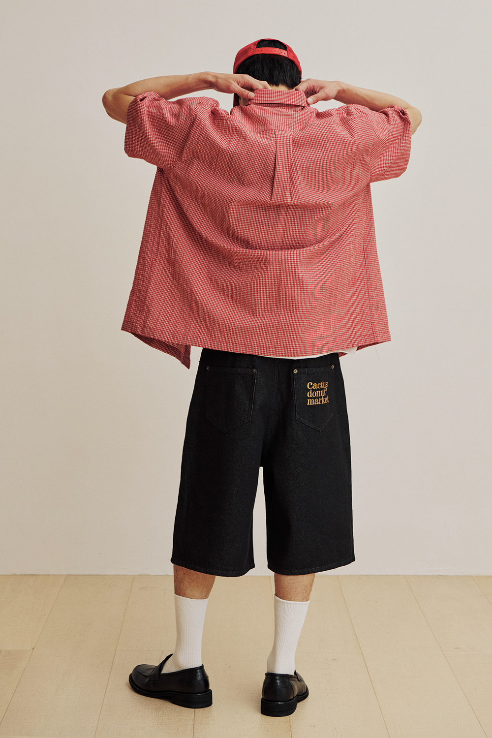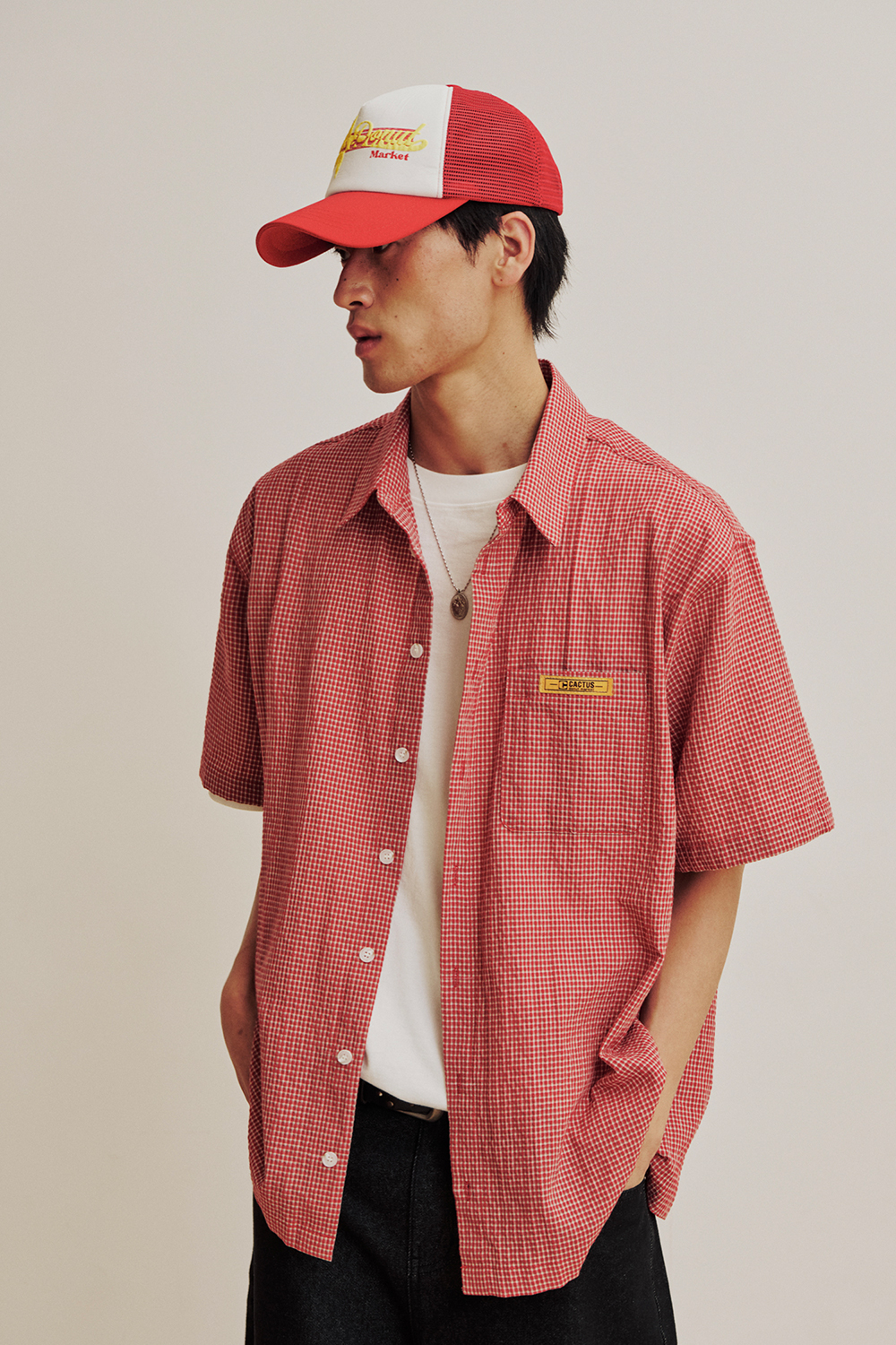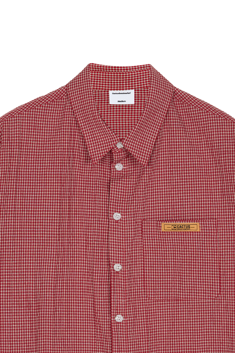 캑터스도넛마켓 미니 라벨 체크 하프 셔츠 – 레드