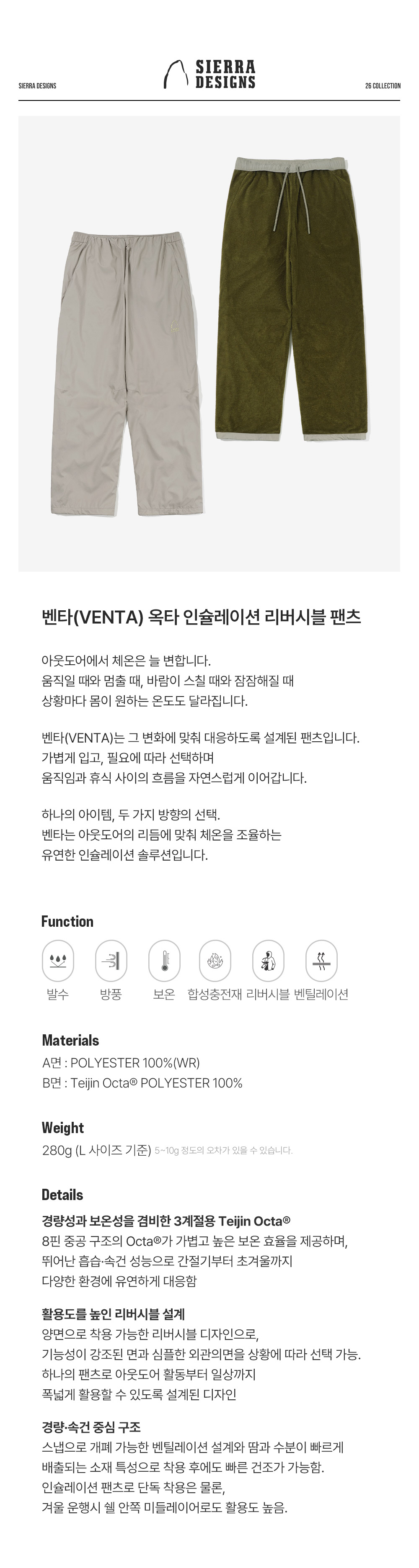 시에라디자인 벤타 옥타 인슐레이션 리버시블 팬츠 라이트 브라운