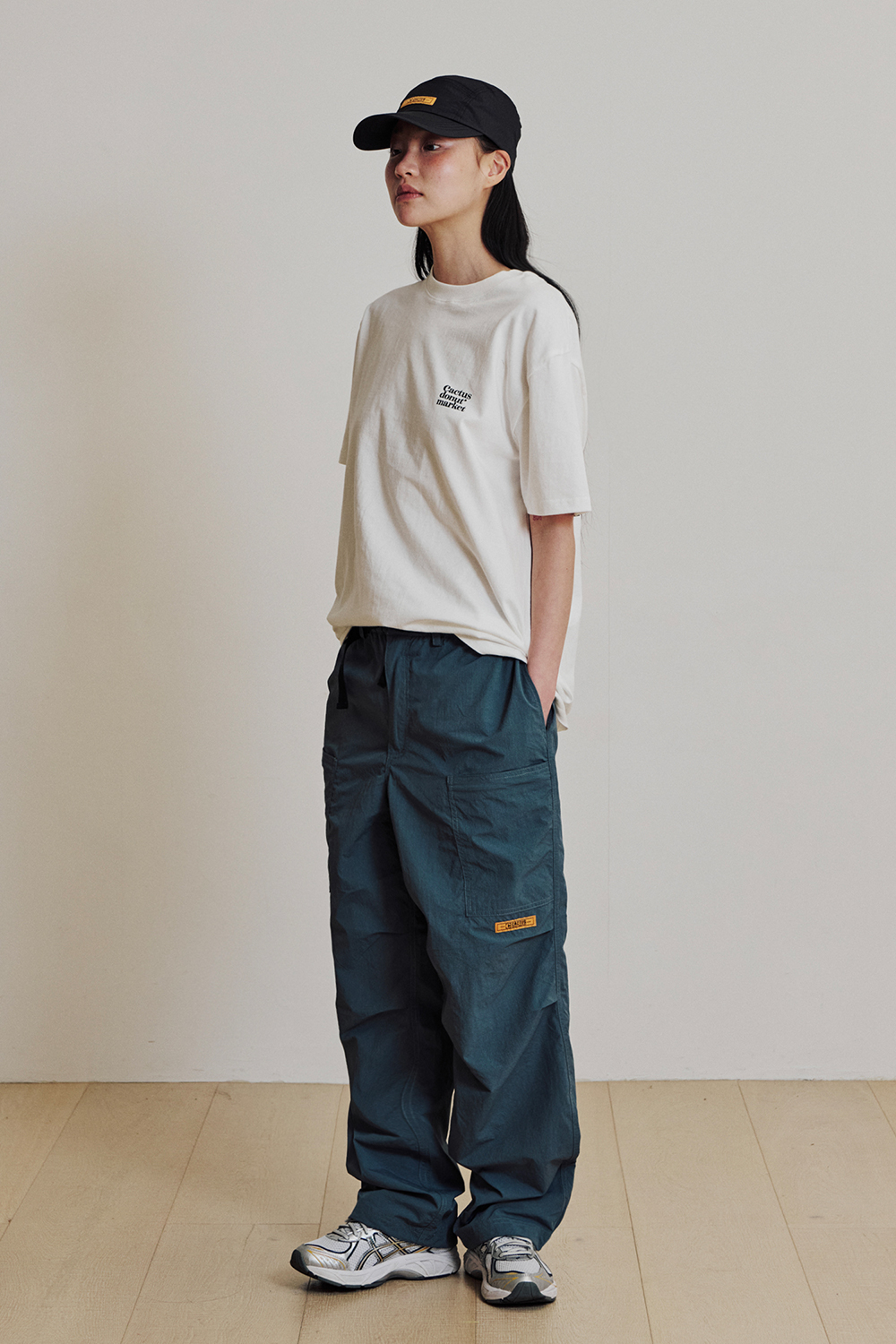 캑터스도넛마켓 버클 나일론 카고 팬츠 – 블루 그린