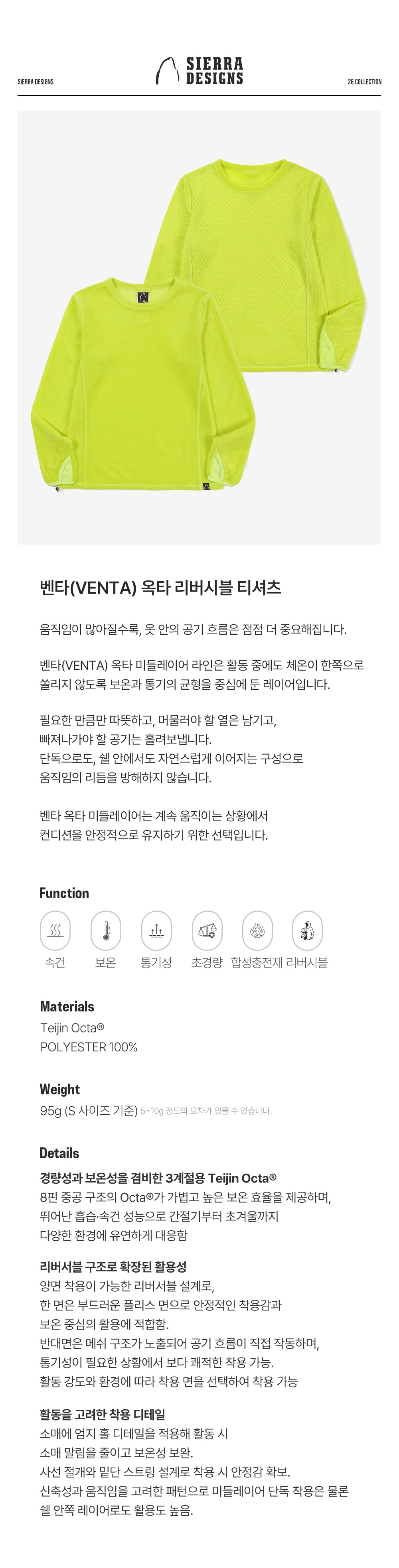시에라디자인 W 벤타 옥타 롱슬리브 라임