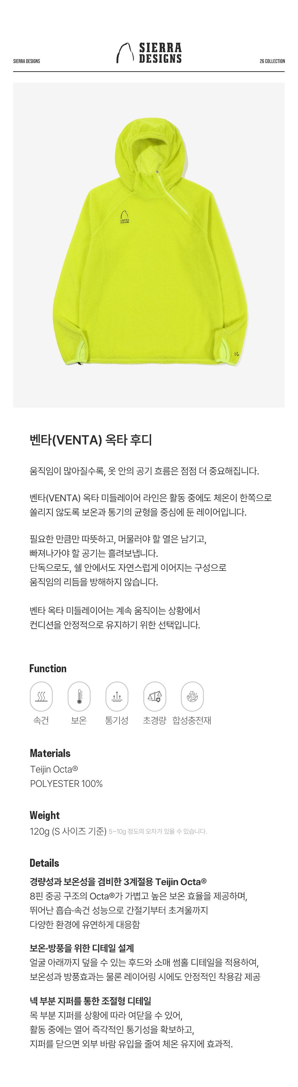 시에라디자인 W 벤타 옥타 후디 여성 라임