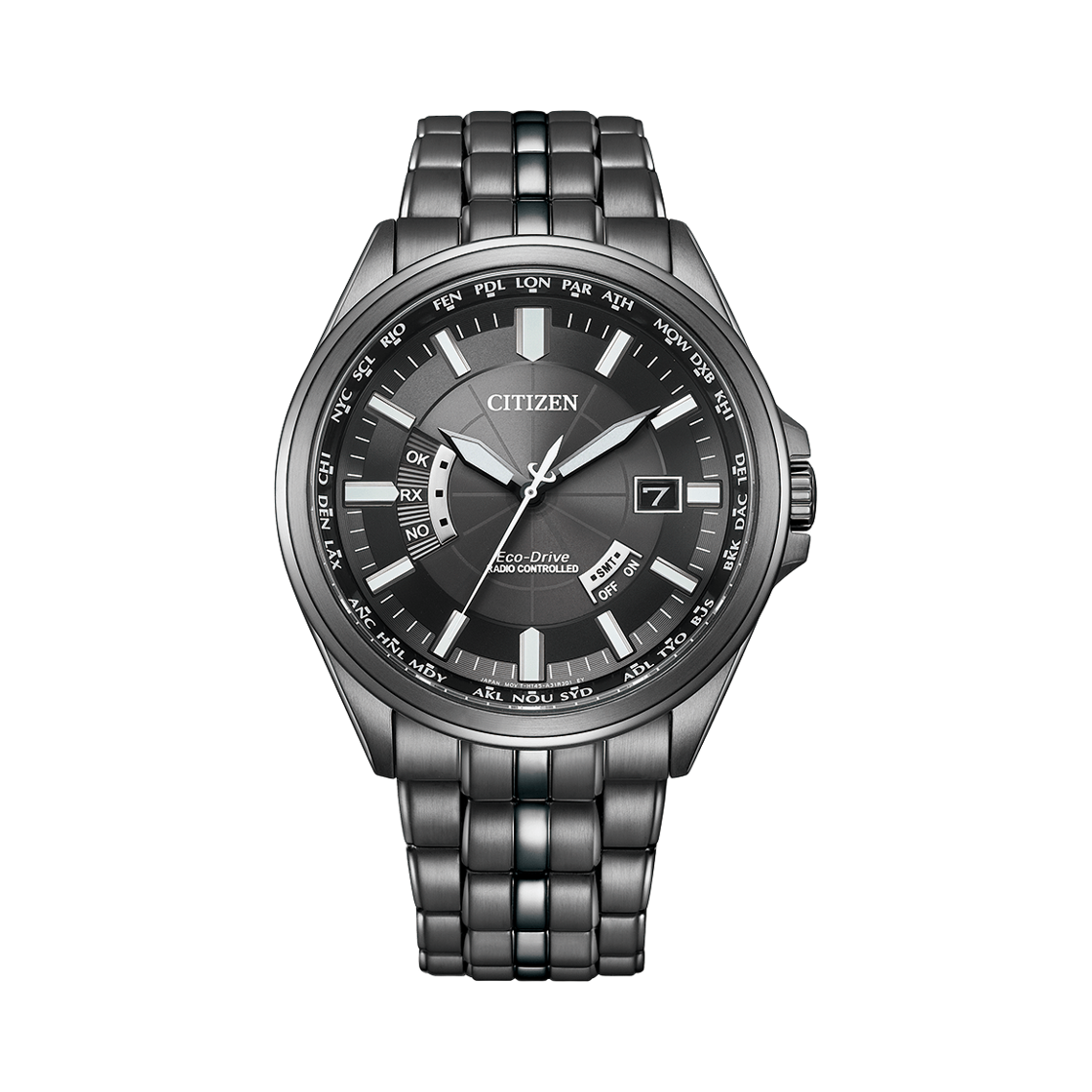 시티즌 글로벌 라디오 컨트롤 에코드라이브 43mm 스테인리스 스틸 블랙