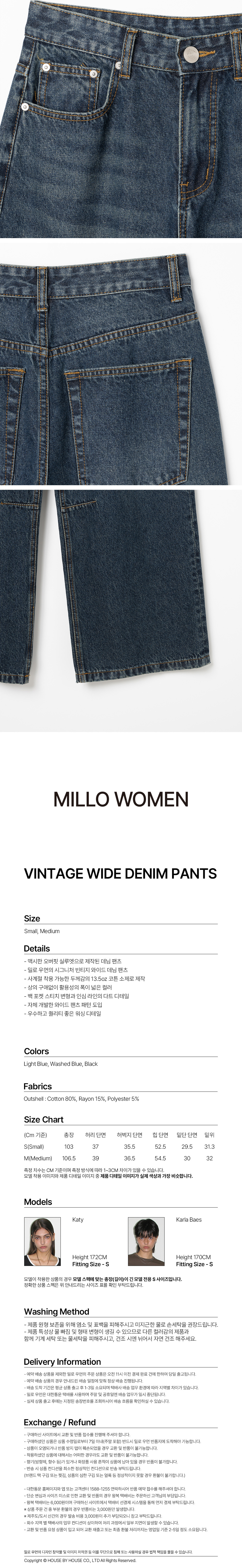 밀로 우먼 빈티지 와이드 데님 팬츠 워시드 블루