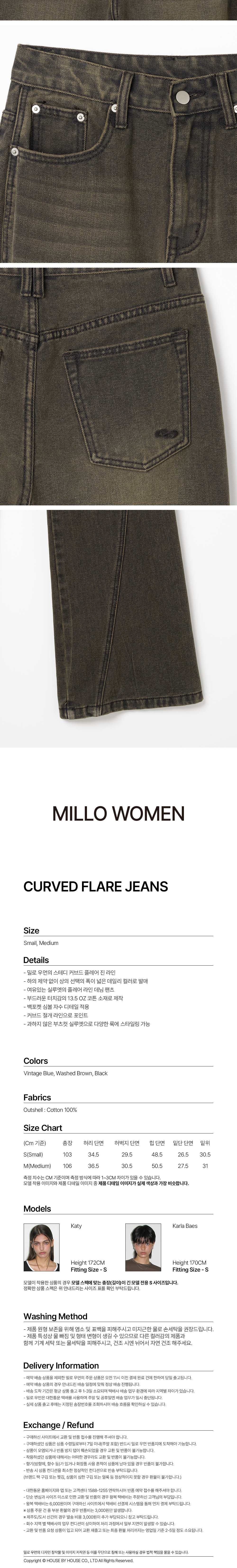 밀로 우먼 커브드 플레어 진 워시드 브라운