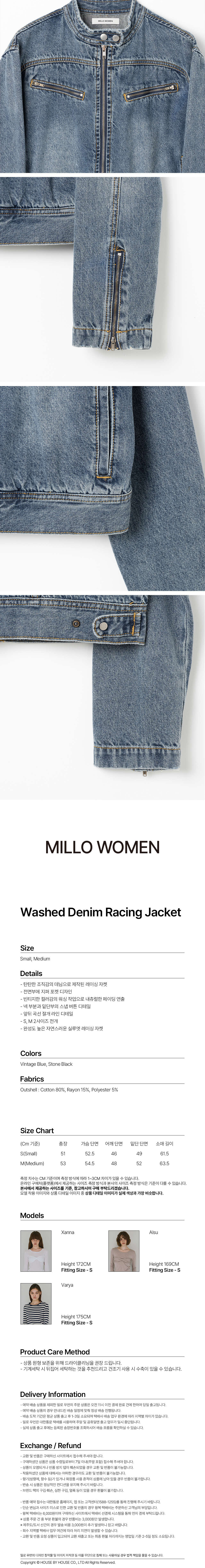 밀로 우먼 워시드 데님 레이싱 자켓 빈티지 블루