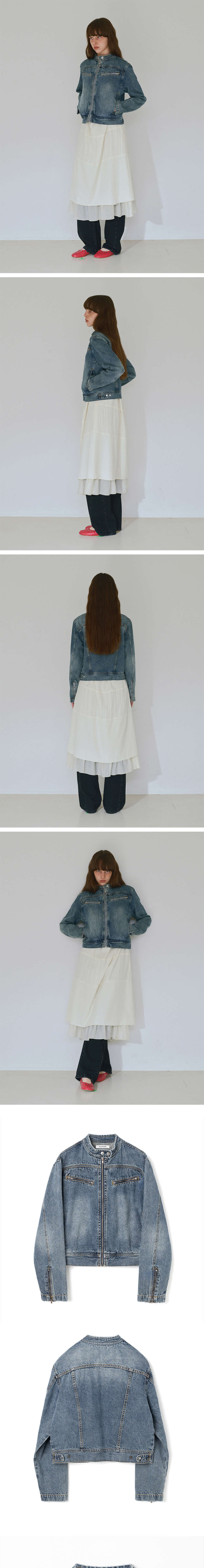 MILLO WOMEN Washed Denim Racing Jacket Vintage Blue