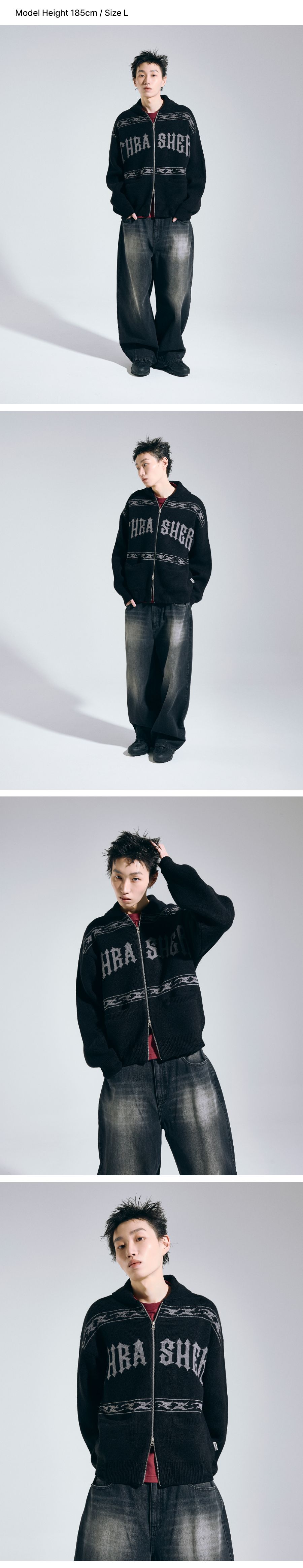 THRASHER Lowlow Pattern Knit Zip-Up Black