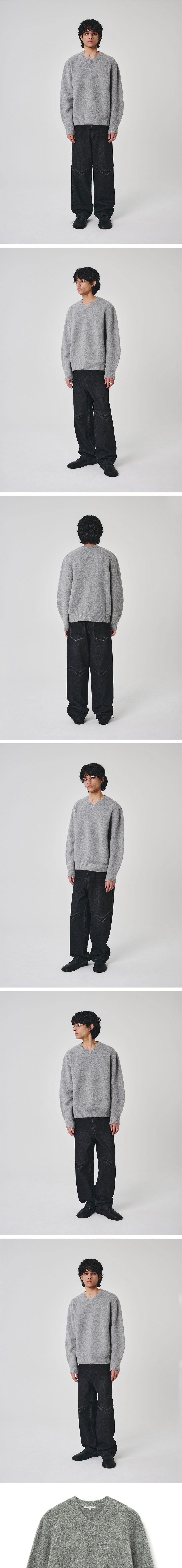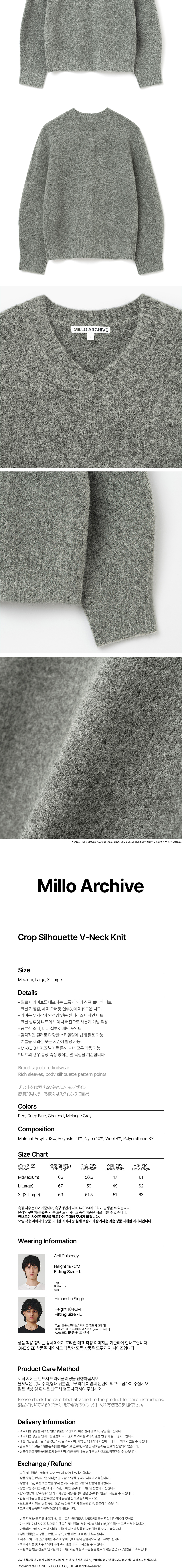 밀로 아카이브 크롭 실루엣 브이넥 니트 멜란지 그레이