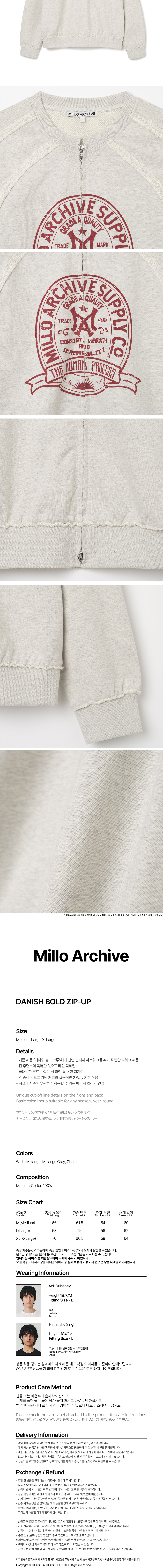 밀로 아카이브 데니쉬 볼드 집업 화이트 멜란지
