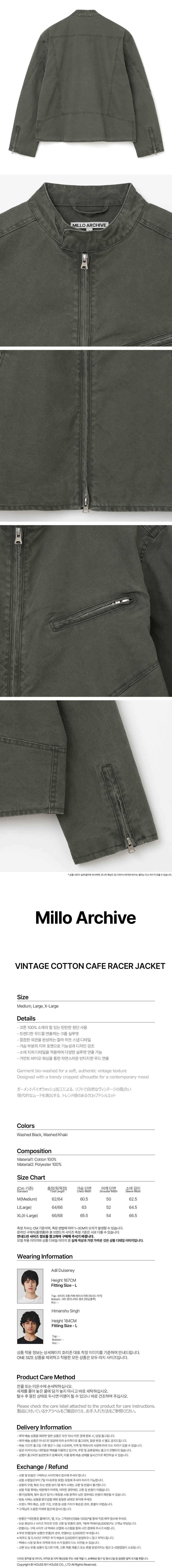 밀로 아카이브 빈티지 코튼 카페 레이서 자켓 워시드 카키