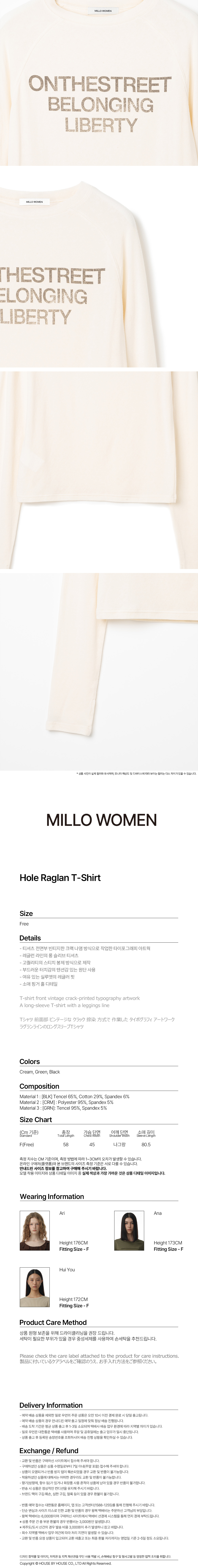 밀로 우먼 홀 래글런 티셔츠 크림