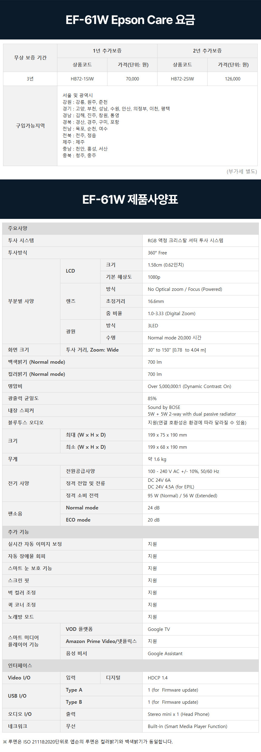 엡손 라이프스튜디오 POP EF-61W 미니 빔프로젝터 FHD 700ISO루멘 트리플코어엔진 BOSE 화이트/로즈/그린