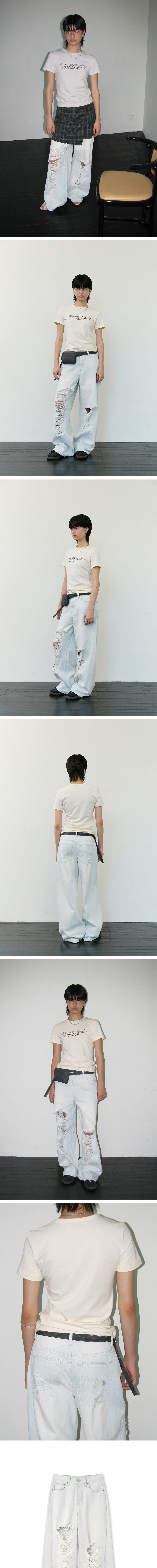 MILLO WOMEN Curved Damage Wide Jeans Ice Blue