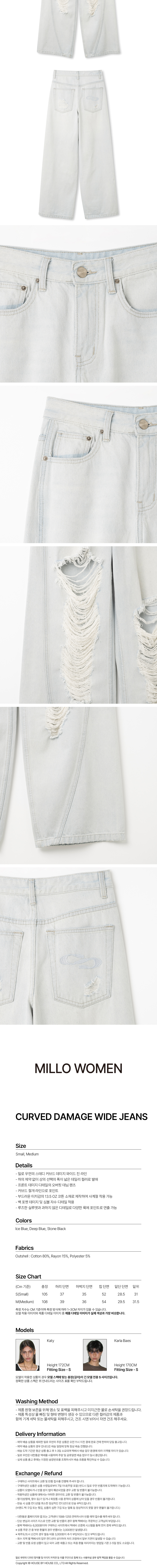 밀로 우먼 커브드 데미지 와이드 진 아이스 블루