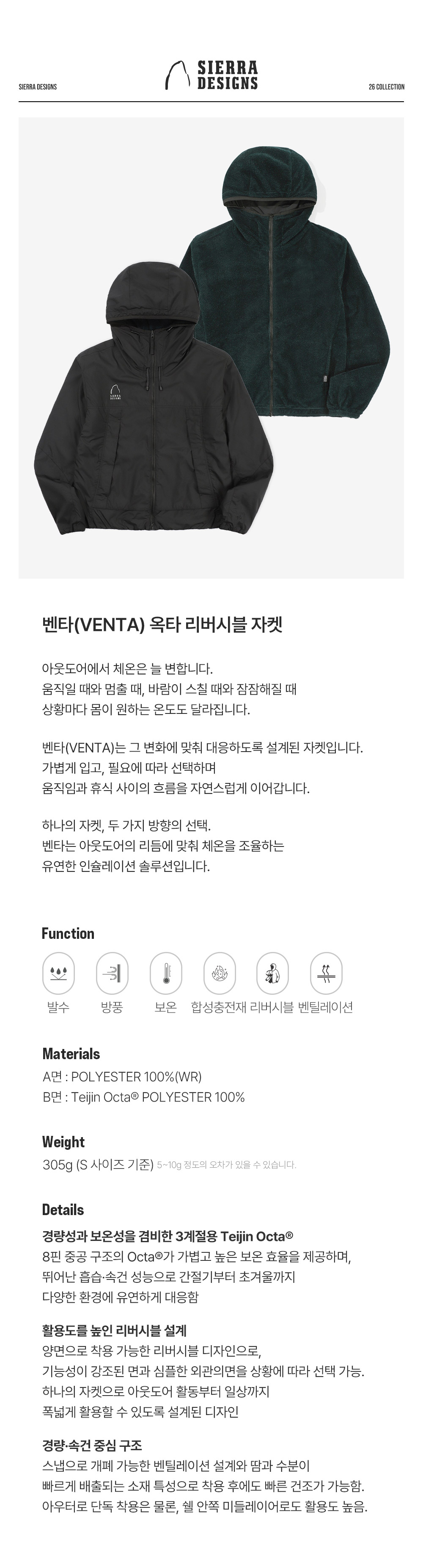 시에라디자인 W 벤타 옥타 리버시블 자켓 블랙