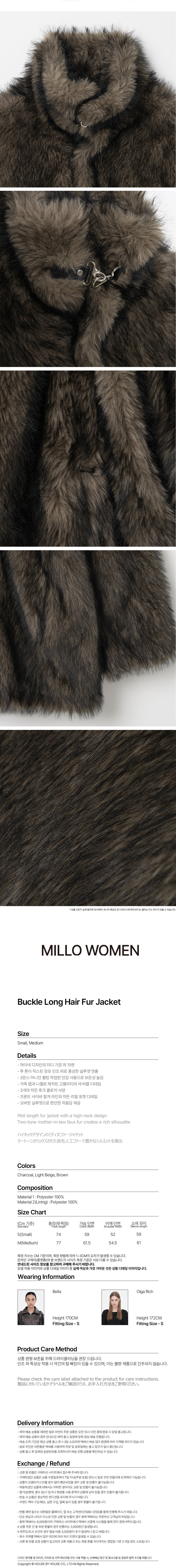 밀로 우먼 버클 롱 헤어 퍼 자켓 브라운
