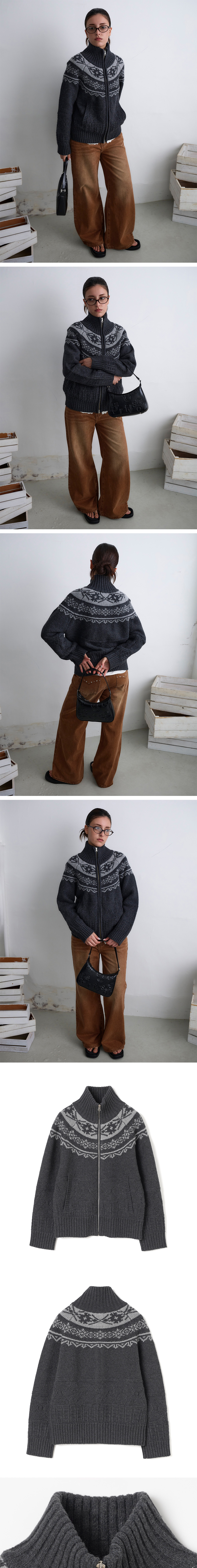 밀로 우먼 터틀넥 코위찬 니트 집업 딥 차콜