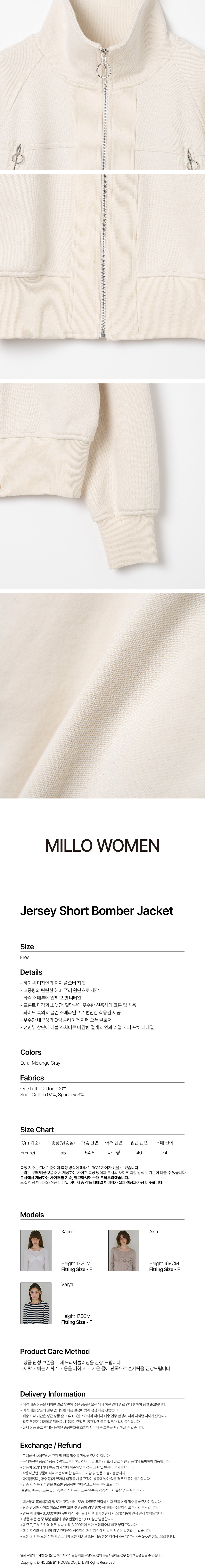 밀로 우먼 져지 숏 봄버 자켓 에크루