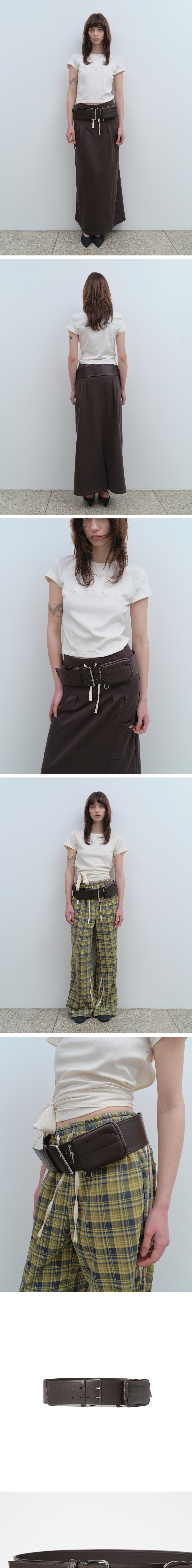 밀로 우먼 스퀘어 버클 파우치 벨트 브라운