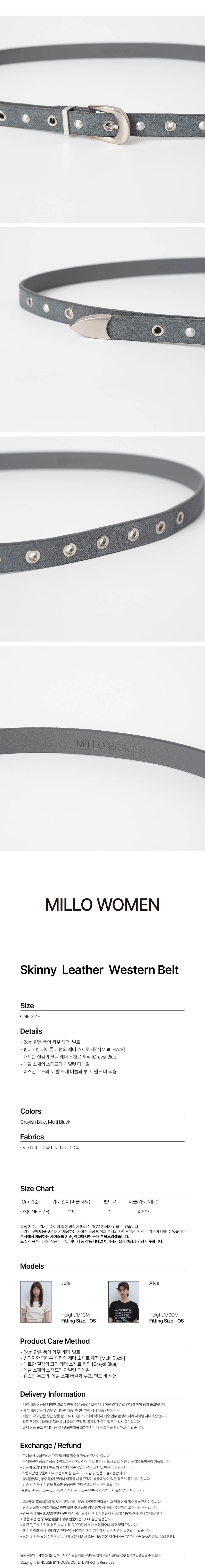 밀로 우먼 스키니 레더 웨스턴 벨트 그레이쉬 블루