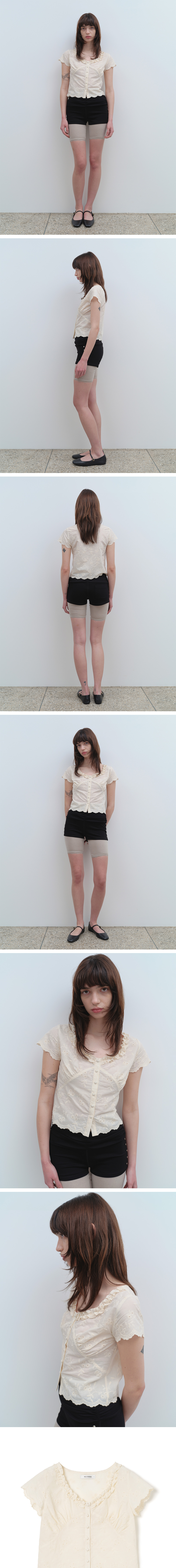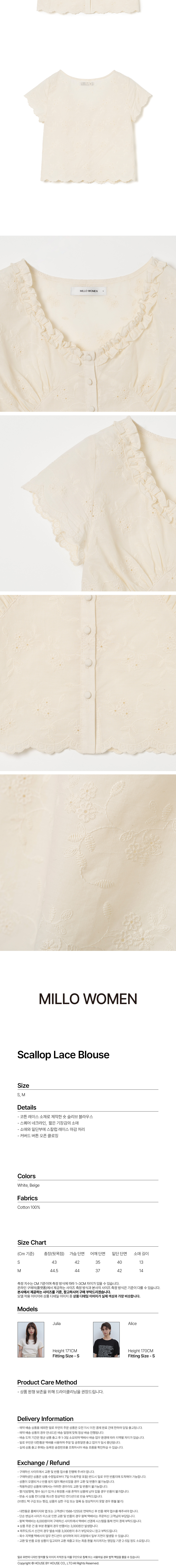 밀로 우먼 스칼럽 레이스 블라우스 베이지