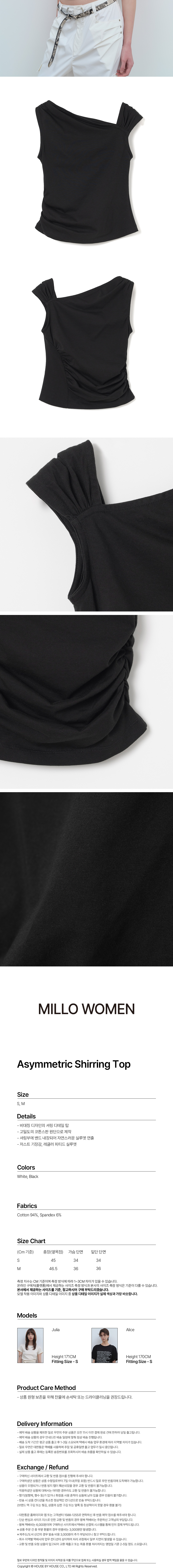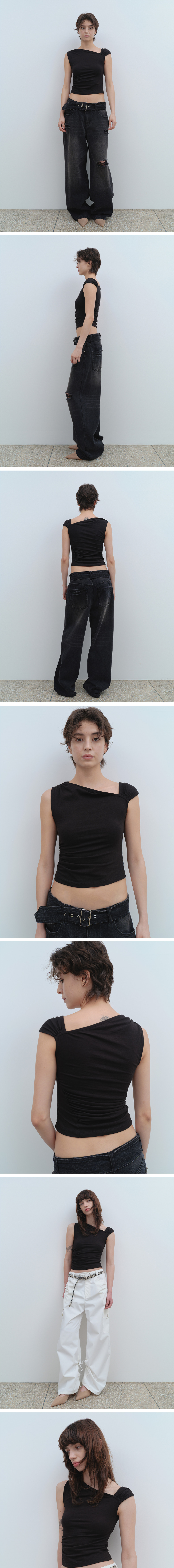 밀로 우먼 어시메트릭 셔링 탑 블랙