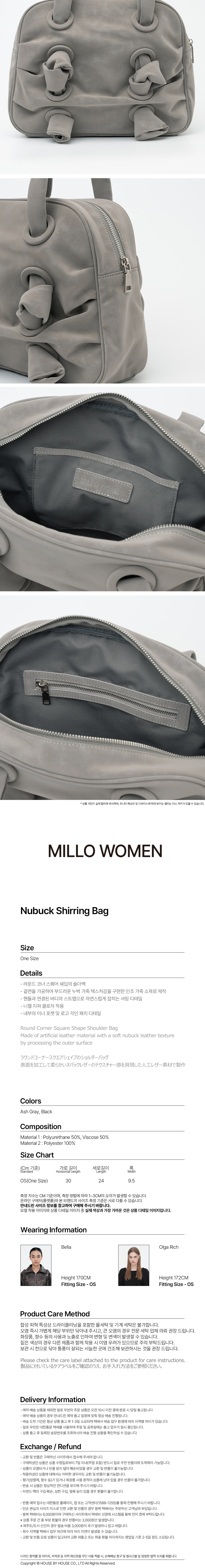 밀로 우먼 누벅 셔링 백 애쉬 그레이