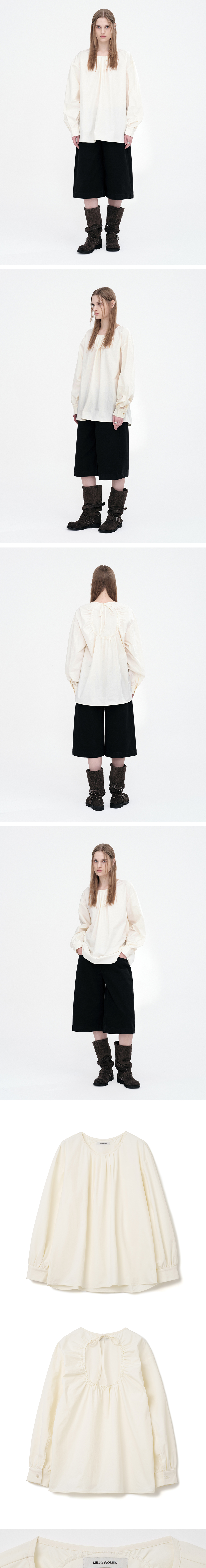 밀로 우먼 라운드 셔링 블라우스 아이보리