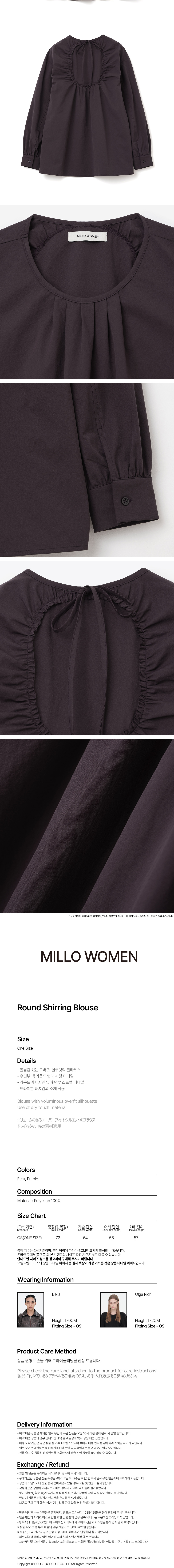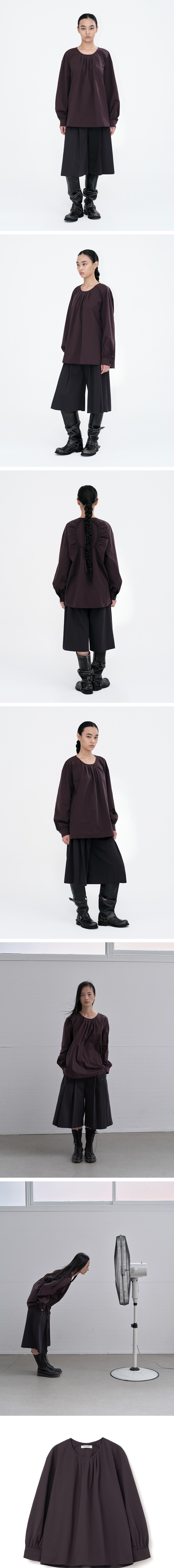 밀로 우먼 라운드 셔링 블라우스 퍼플