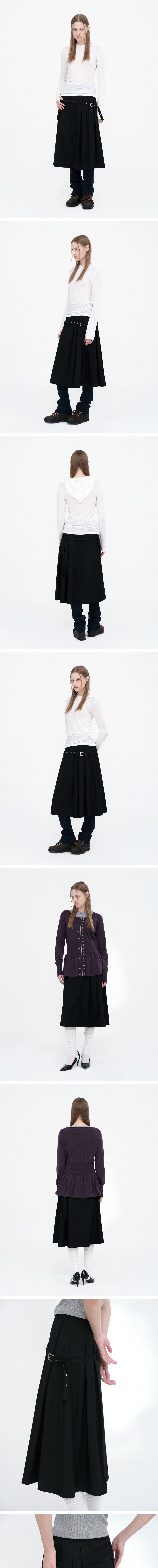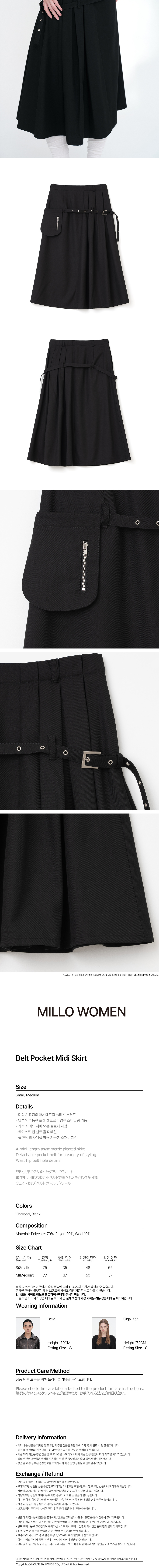밀로 우먼 벨트 포켓 미디 스커트 블랙