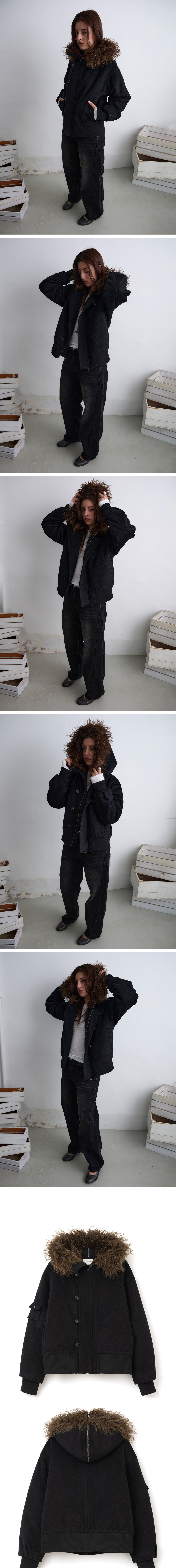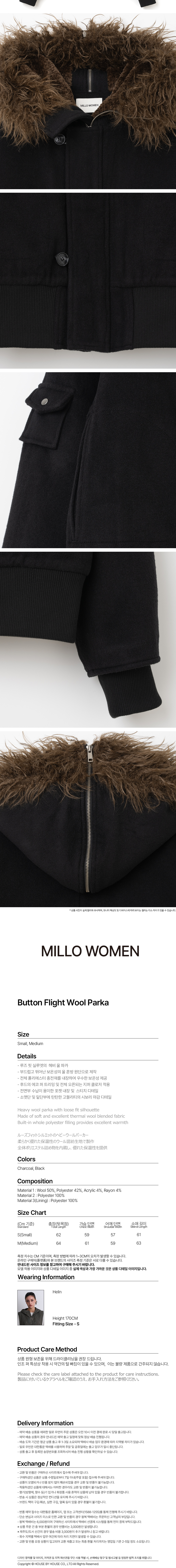 밀로 우먼 버튼 플라이트 울 파카 블랙