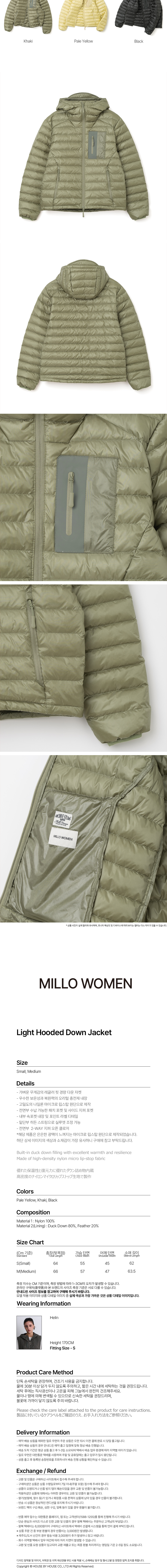 밀로 우먼 라이트 후드 다운 자켓 카키