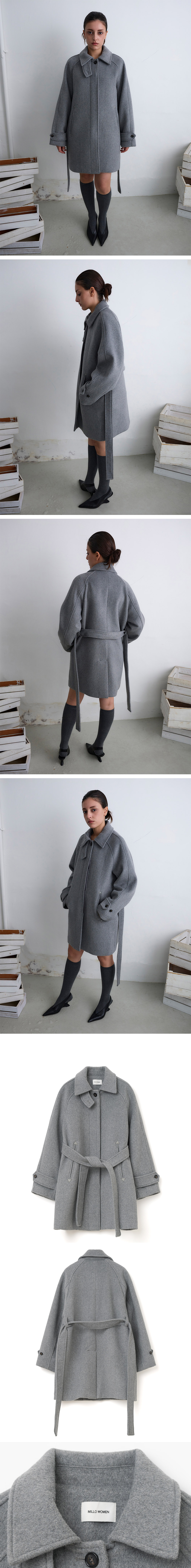 밀로 우먼 울 래글런 하프 코트 그레이