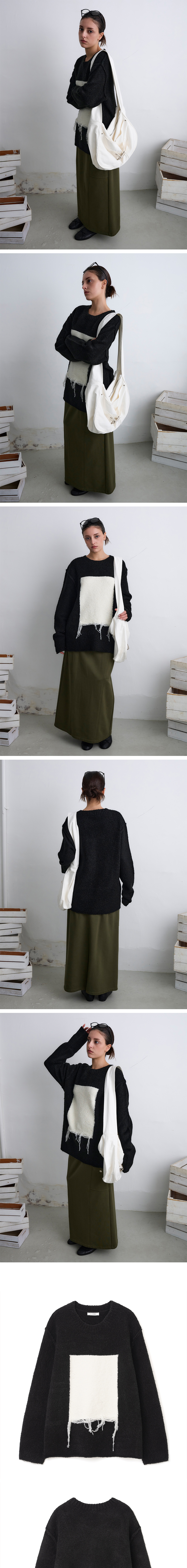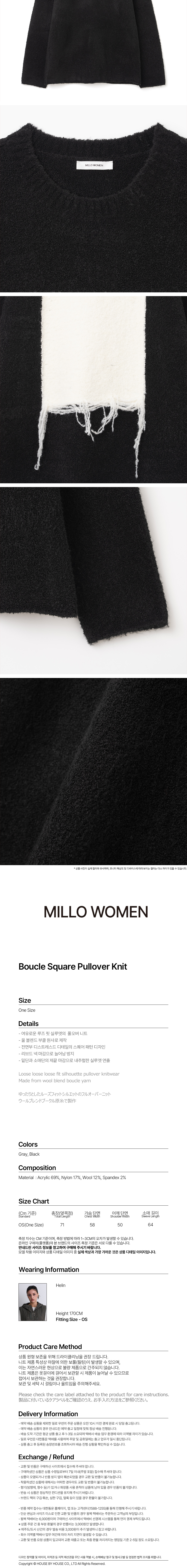 밀로 우먼 부클 스퀘어 풀오버 니트 블랙