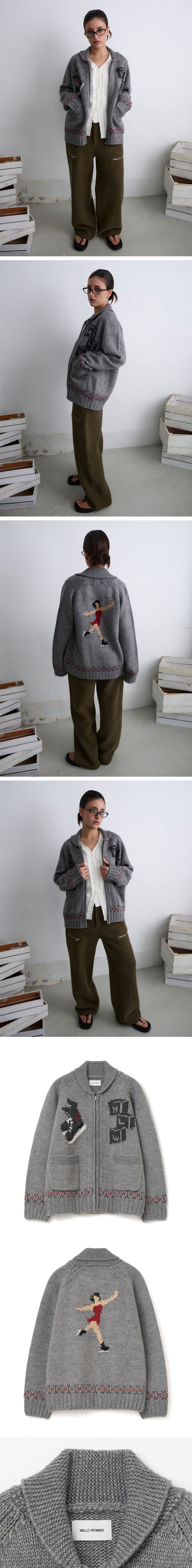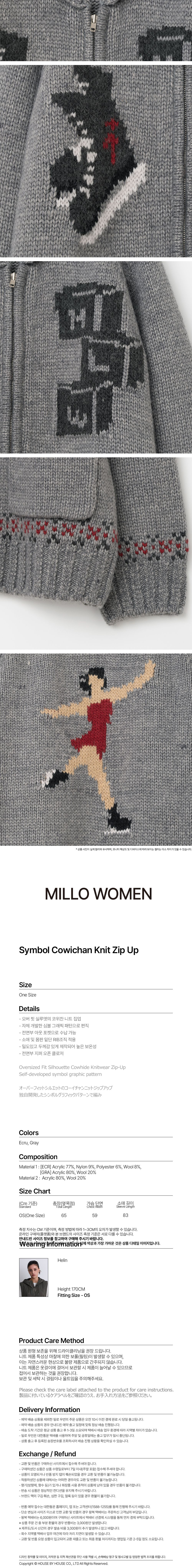 밀로 우먼 심볼 코위찬 니트 집업 그레이