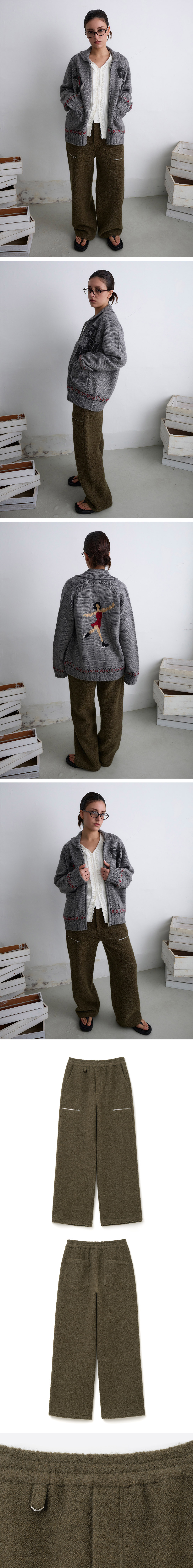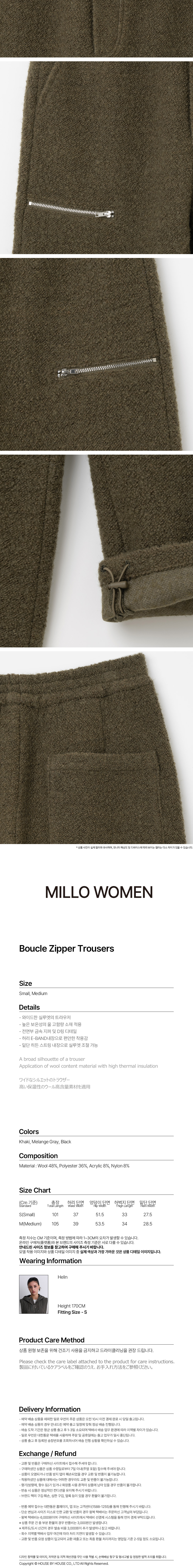 밀로 우먼 부클 지퍼 트라우저 카키