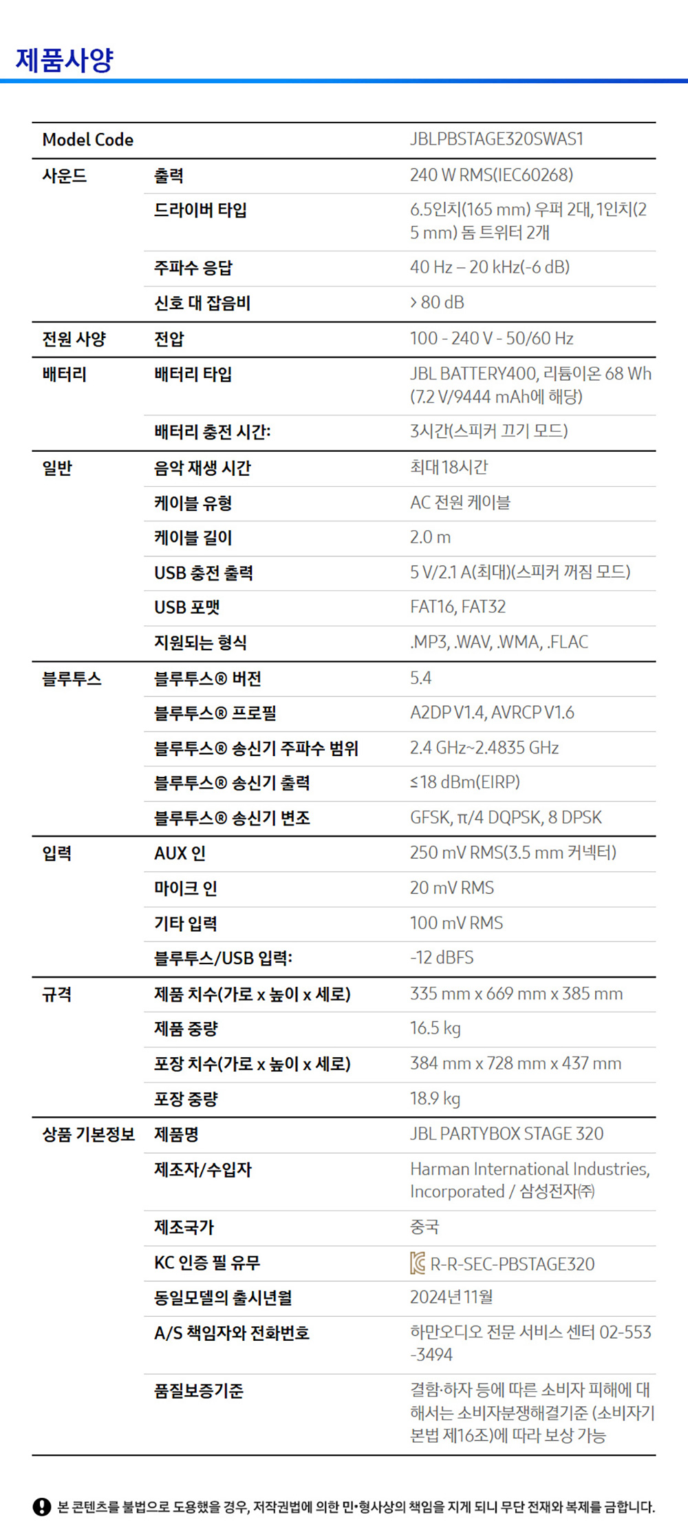 제이비엘 PARTYBOX STAGE 320 파티박스 스테이지 320 블루투스 스피커 화이트