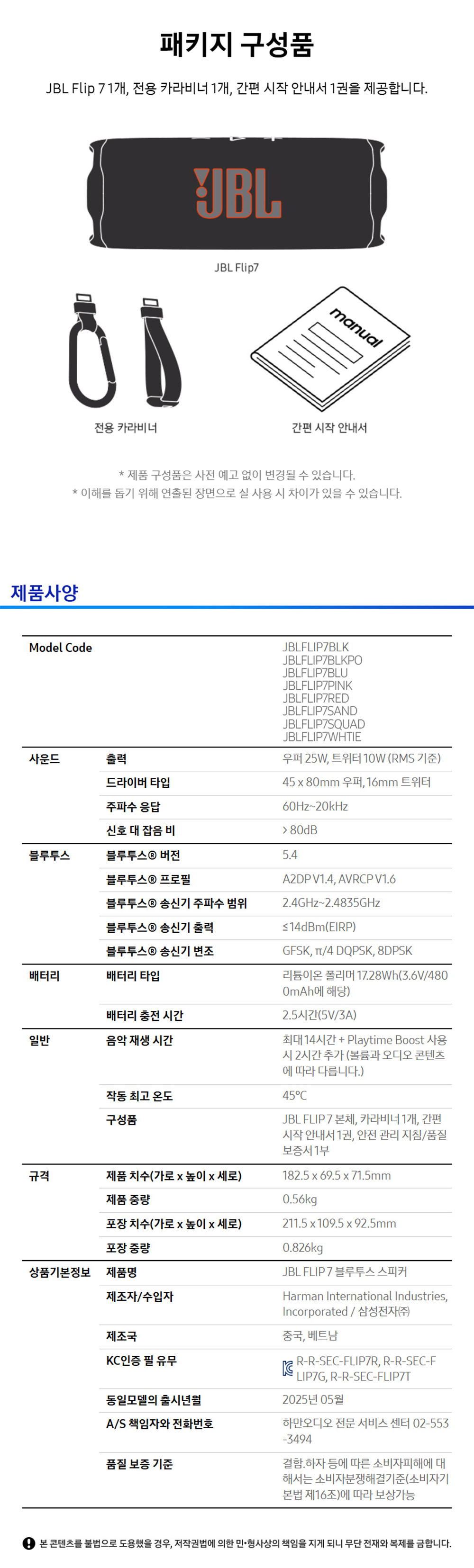제이비엘 FLIP7 휴대용 블루투스 스피커