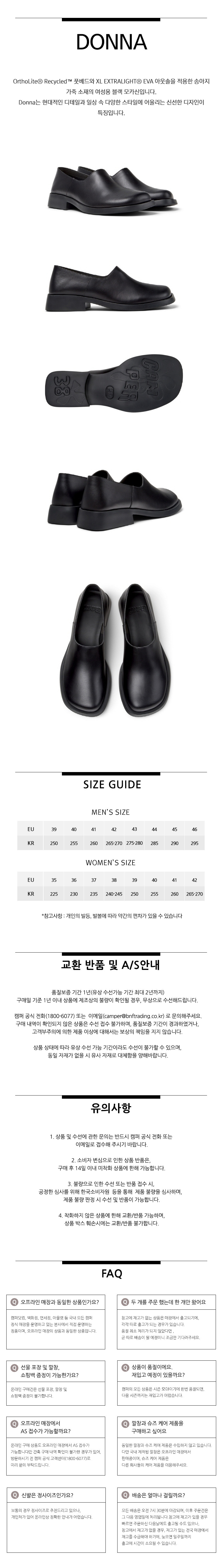 캠퍼 여성 도나 플랫슈즈 블랙