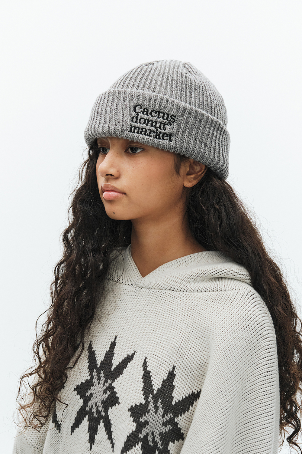 캑터스도넛마켓 레터링 폴드 니트 비니 – 멜란지 그레이