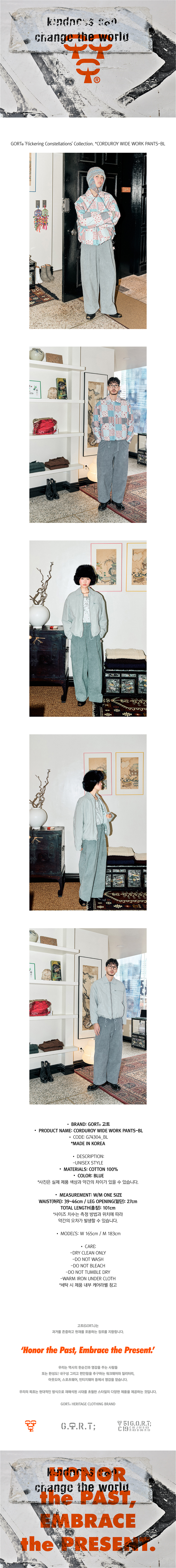 코듀로이 와이드 워크 팬츠 블루