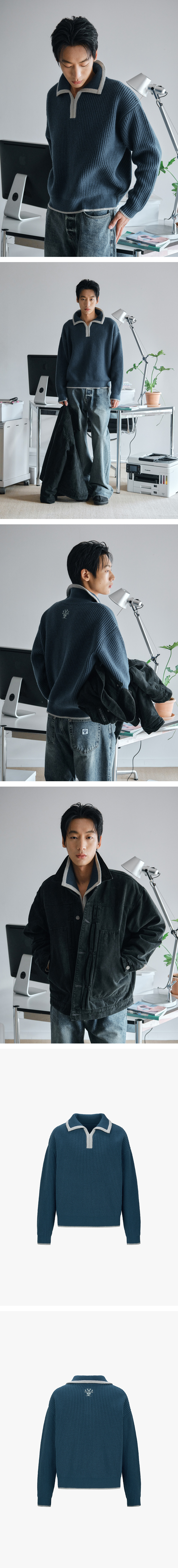 -레귤러 핏의 니트 스웨터 -하이넥 디자인 -뒷목 woodman 나염 디테일